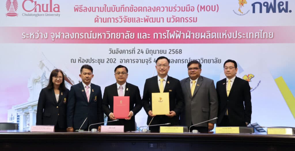 Chulalongkorn University and the Electricity Generating Authority of Thailand (EGAT) signed a memorandum of understanding to strengthen cooperation in research, innovation, and knowledge exchange. This collaboration focuses on key energy technologies vital for Thailand’s transition to sustainable power, including: