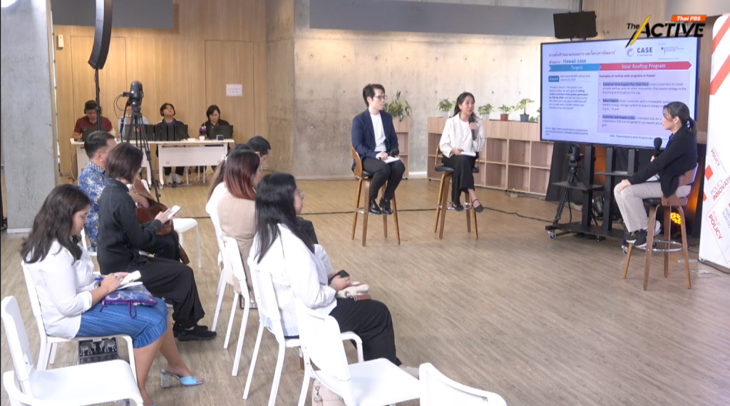 At this high-level forum organized by the Clean, Affordable, and Secure Energy for Southeast Asia (CASE) project in collaboration with Deutsche Gesellschaft für Internationale Zusammenarbeit (GIZ), ERI, Thai PBS Podcast, The Active, and the Thailand Development Research Institute (TDRI), Dr.Siripha Junlakarn, researcher at ERI, presented findings from the study “Unlocking Rooftop Solar to Drive Thailand Toward a Sustainable Clean Energy Future.”