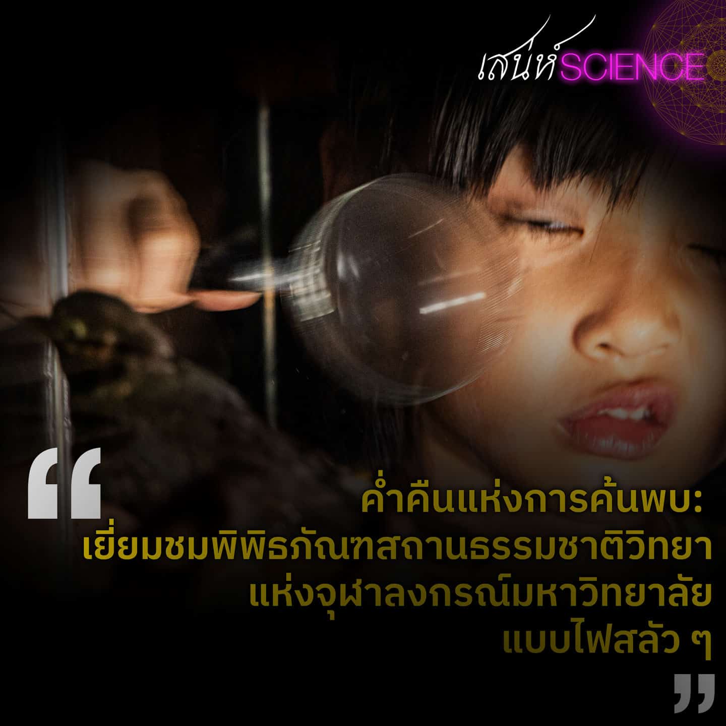 Under the theme “Science meets Art – Art meets Science”, Chulalongkorn University opened its museums to the public for three nights of immersive learning. The Night Museum at Chula blended science, art, and technology with vibrant light, sound, and interactive exhibitions. Visitors could explore natural history, geology, plant science, and imaging technology through free entry exhibitions, DIY workshops, science demonstrations, art performances, and discussions — co-organized by the Office of Art and Cultural, Faculty of Science, Faculty of Fine and Applied Arts, and the Aquatic Resources Research Institute, Chulalongkorn University. [ https://www.chula.ac.th/highlight/205563/ ]