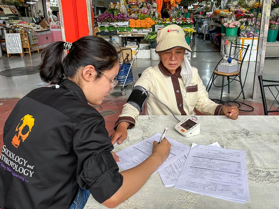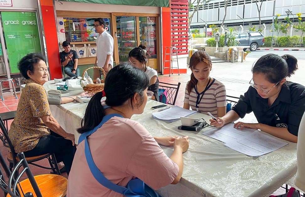 On March 25, 2024, at Samyan Market, the Office of Property Management, Chulalongkorn University (PMCU), in collaboration with the “Chula Home Health” Community Innovation Project under the College of Public Health Sciences, Chulalongkorn University, organized a community health screening activity for local residents.