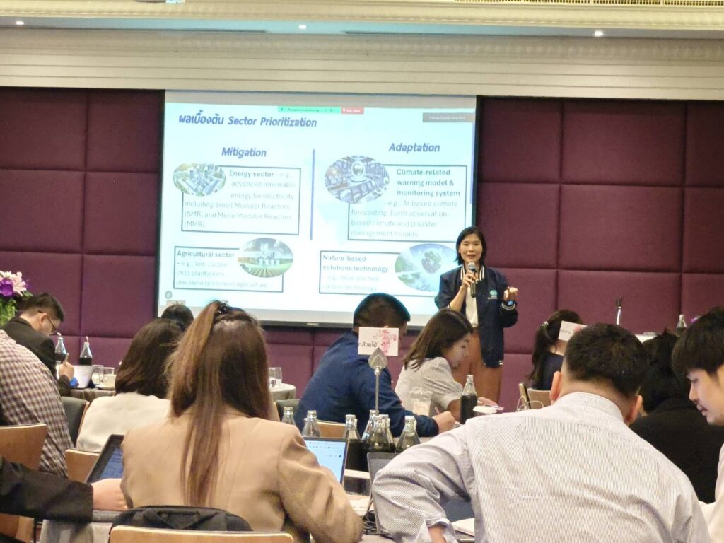 In the morning session, Dr. Kommate Jitvanichphaibool, Senior Director of the Office of National Higher Education, Science, Research and Innovation Policy Council (NXPO) and Deputy Director of the APEC Center for Technology Foresight, delivered a keynote lecture on “Strategies for Transitioning to a Low-Carbon Economy.” He shared practical tools for future foresight to support national and international transitions toward low-carbon systems, highlighting lessons learned from both local and global case studies.