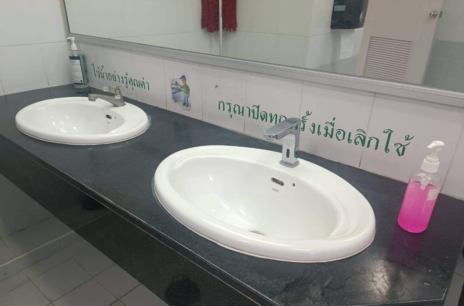 The Physical Resources Management Office, Chulalongkorn University, which oversees all campus buildings and physical facilities, has replaced conventional faucets with automatic sensor faucets in restrooms to minimize unnecessary water use and prevent water wastage from forgetting to turn off taps. In addition, water-saving sanitary fixtures have been installed in all buildings under its supervision.
