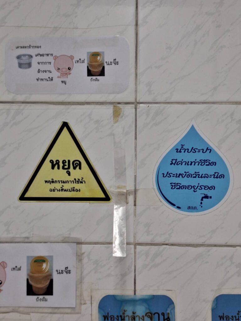 Similarly, the Office of Student Dormitory, Chulalongkorn University and Chulalongkorn University’s Dormitory Student Committee have jointly created and installed signs reminding residents to turn off water and electricity when not in use in both common areas and private rooms. The initiative also includes awareness-raising and communication activities encouraging dormitory residents to save water and electricity, reduce pollution and greenhouse gas emissions, and help lower utility costs. [ https://rcuchula.com/rcu_web/index.php ]